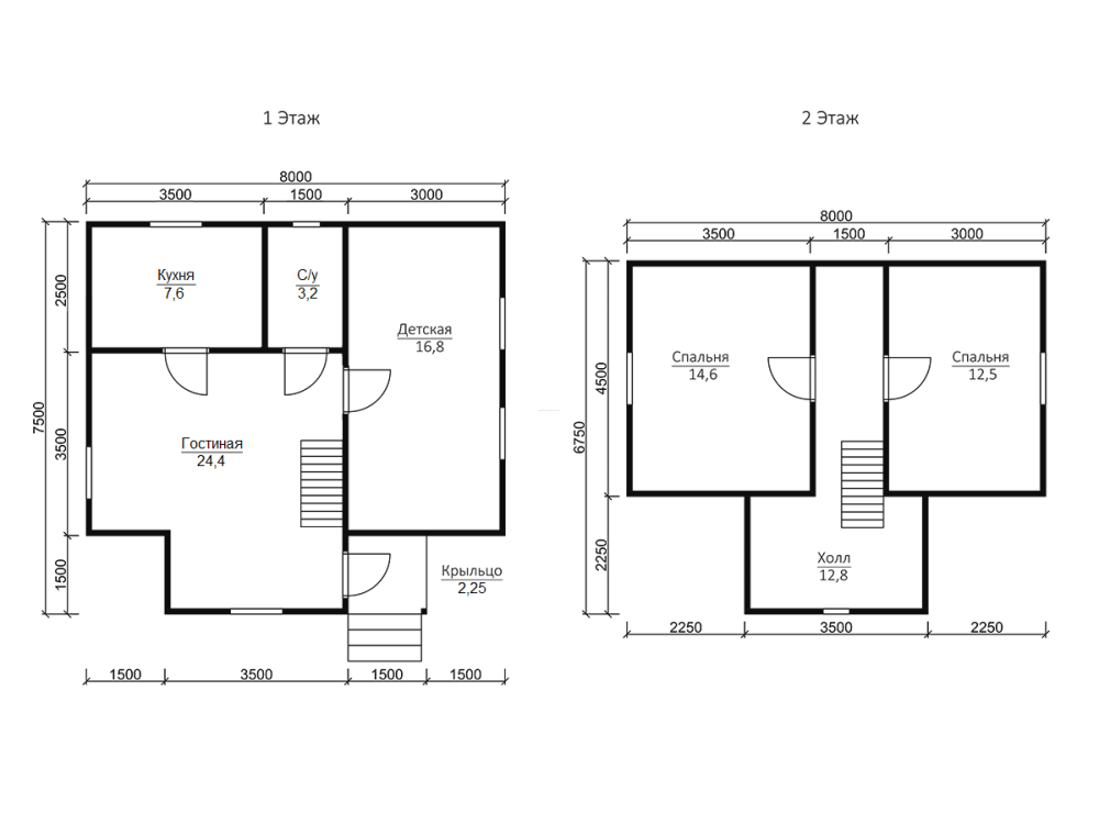 Красивый полутораэтажный деревянный дом размером 7,5х8 м. с и общей площадью 83.28 кв.м. отличается функциональной планировкой и идеально подходит для семьи.
