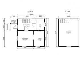 Красивый полутораэтажный деревянный дом размером 6х6 м. с и общей площадью 55 кв.м. отличается функциональной планировкой и идеально подходит для семьи.