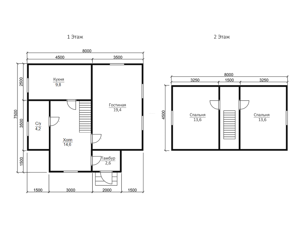 Дом имеет размеры 7,5х8 м. и занимает площадь 84.76 кв.м.. В доме всегда будет светло – во всех помещениях предусмотрены двойные стеклопакеты. Размеры комнат достаточны для комфортного загородного проживания. Крыша дома двускатная из ондулина предложенной расцветки: коричневой, зеленой или красной.