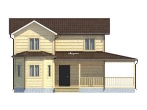 Проект 64 – двухэтажный каркасный дом с большой террасой и эркером.