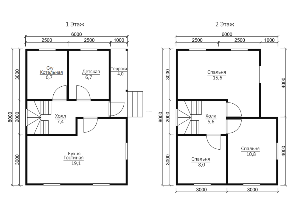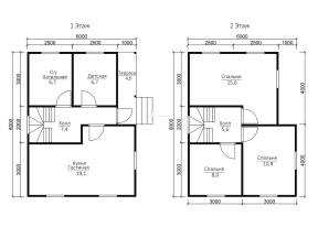 Дом имеет размеры 6х8 м. и занимает площадь кв.м.. В доме всегда будет светло – во всех помещениях предусмотрены двойные стеклопакеты. Размеры комнат достаточны для комфортного загородного проживания. Крыша дома двускатная из ондулина предложенной расцветки: коричневой, зеленой или красной.